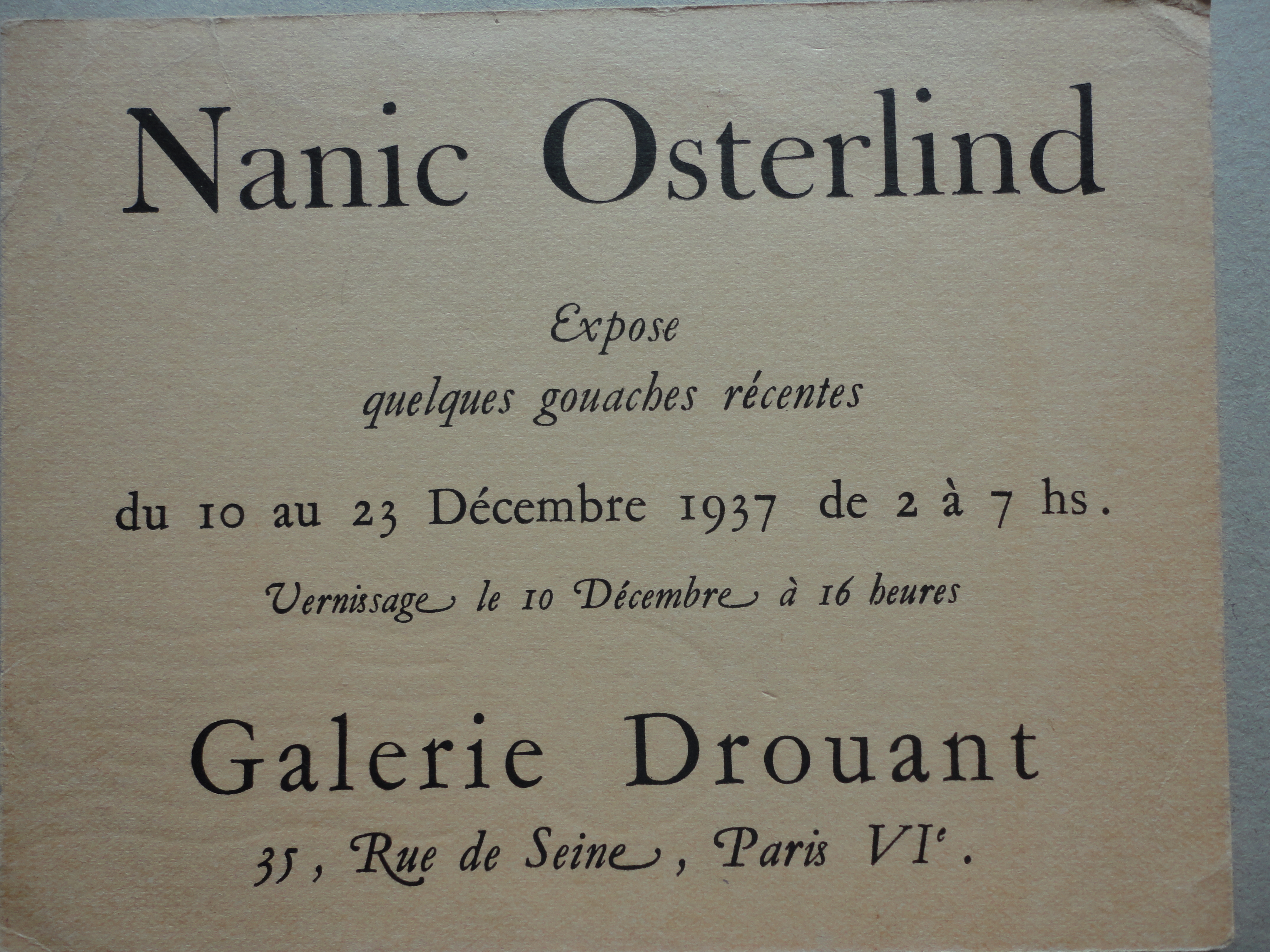 Nanic Osterlind carton d'invitation exposition 1937